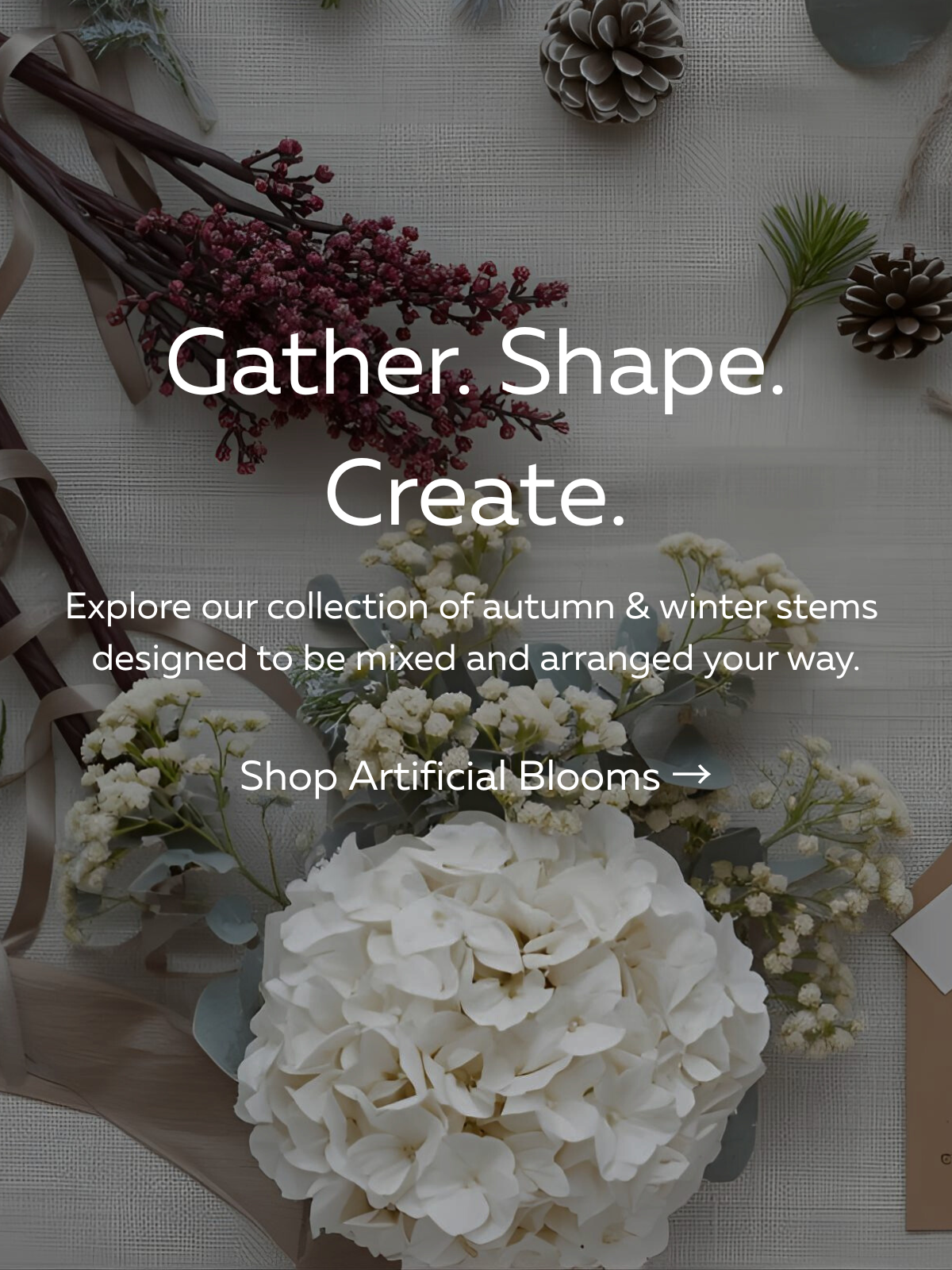 Our autumn–winter collection blends lifelike hydrangeas, peonies, and foliage in warm, natural hues. Designed for timeless styling, these pieces bring depth and calm to every interior through the colder months.